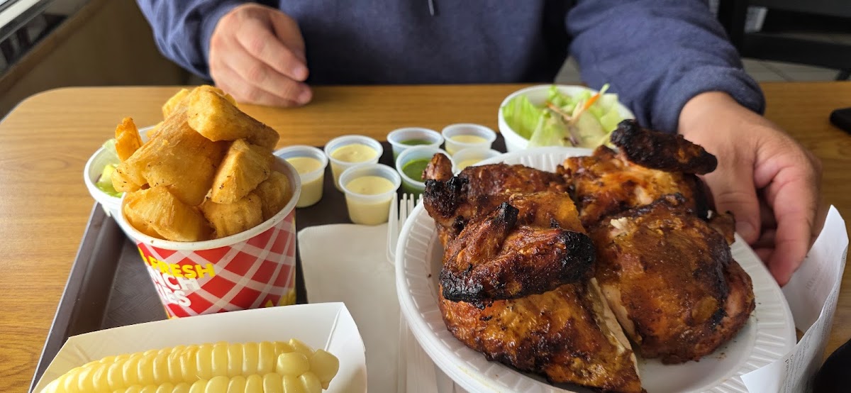 The atmosphere is casual but attentive, grounded by the aroma of perfectly seasoned Peruvian-style chicken slow-cooked on the rotisserie, a scent that often drifts all the way to the parking lot. Inside, the kitchen’s rhythm is visible and genuine; you can almost see the care in how each quarter chicken is carved, and in the way the chef’s quiet pride colors the air. There’s a palpable love for what they do here, which spills into every detail — from the fluffy softness of the chicken sandwiches to the fresh, crisp sides that accompany the plates.