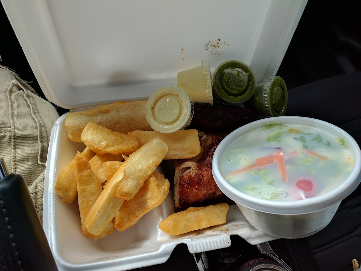I was looking for some chicken to eat, I was in this plaza and I said I will try this spot, u smell the chicken from the parking lot, we ordered Street Tacos and a quarter of a chicken, very well seasoned, ( THE CHEF HAD A SMILE ON HIS FACE BECAUSE HE LOVED HIS JOB,) as I watched him chopped the chicken in halves!!